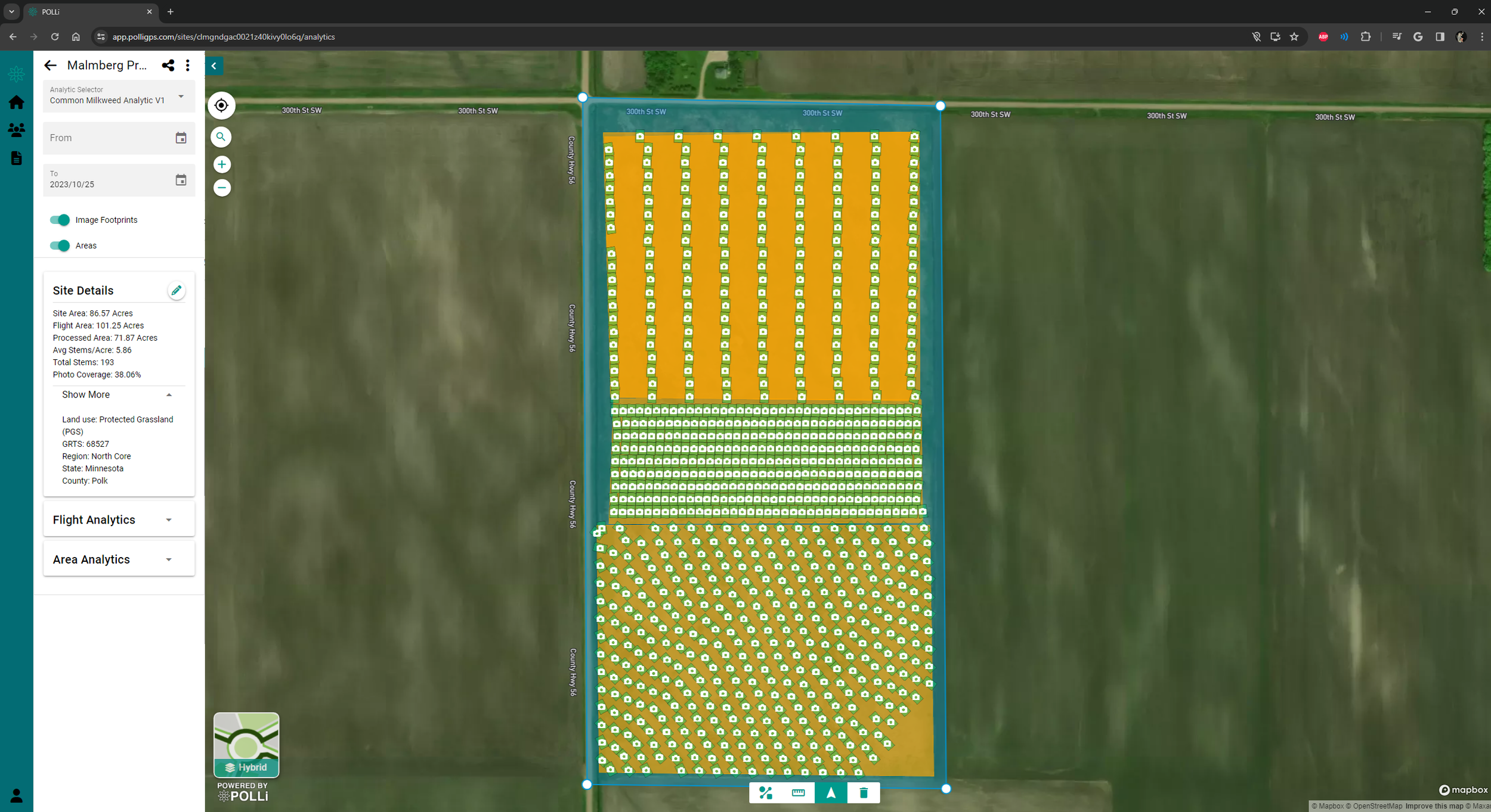 Polli uses a sampling technique that does not require a complete overlap of the imagery. This feature aims to reduce the overall image count and processing requirements. The strategy of no overlap is intentional to support scaling large projects like conservation initiatives. POLLi is capable of generating precise location accuracy. However, processing with high absolute accuracy isn't necessary when relative accuracy is sufficient. The use of Ground Control Points is not an option in POLLi.
